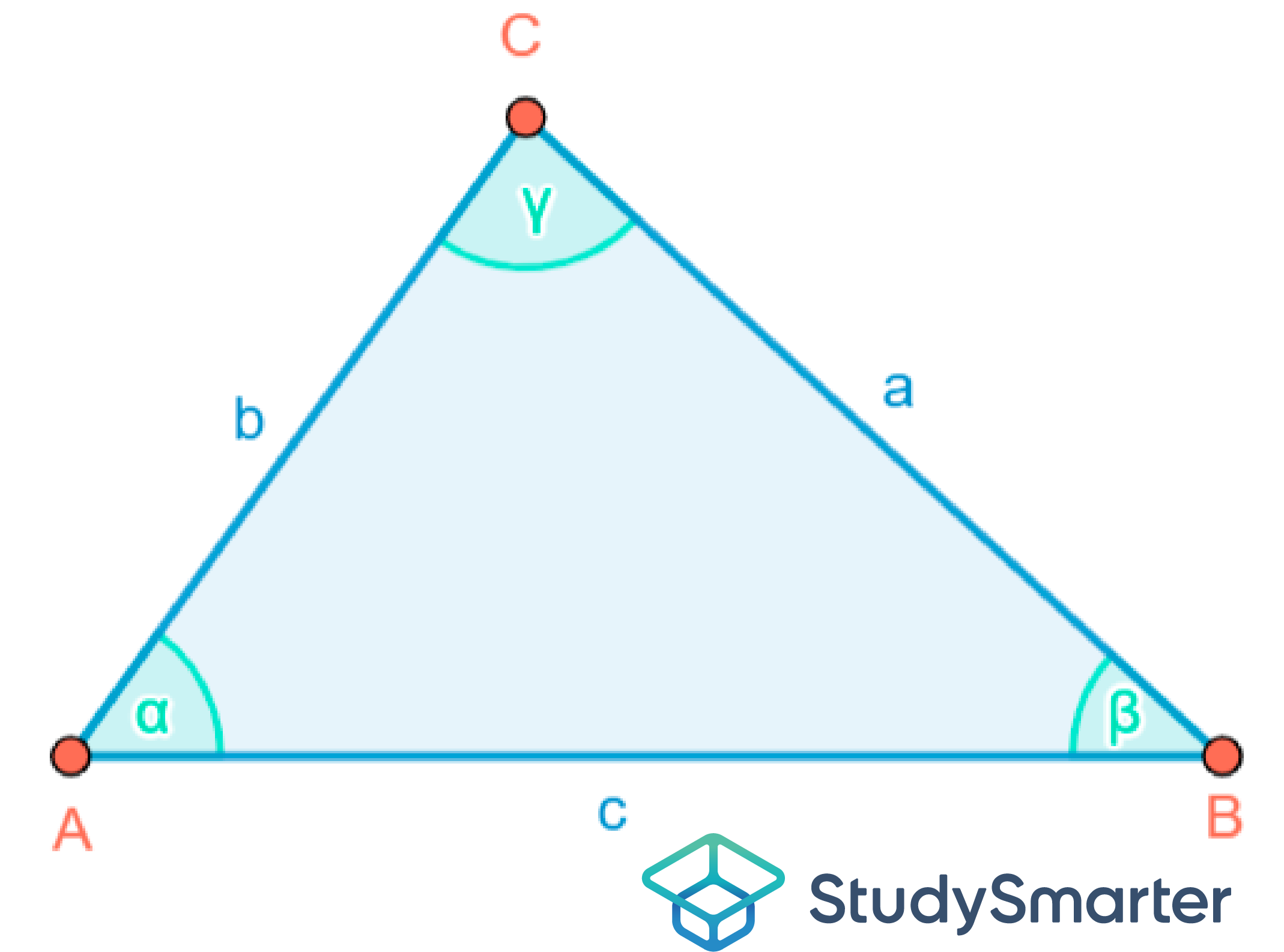 - Die Seiten des Dreiecks werden wie die gegenüberliegenden Eckpunkte bezeichnet, sie werden jedoch als Kleinbuchstaben geschrieben.
